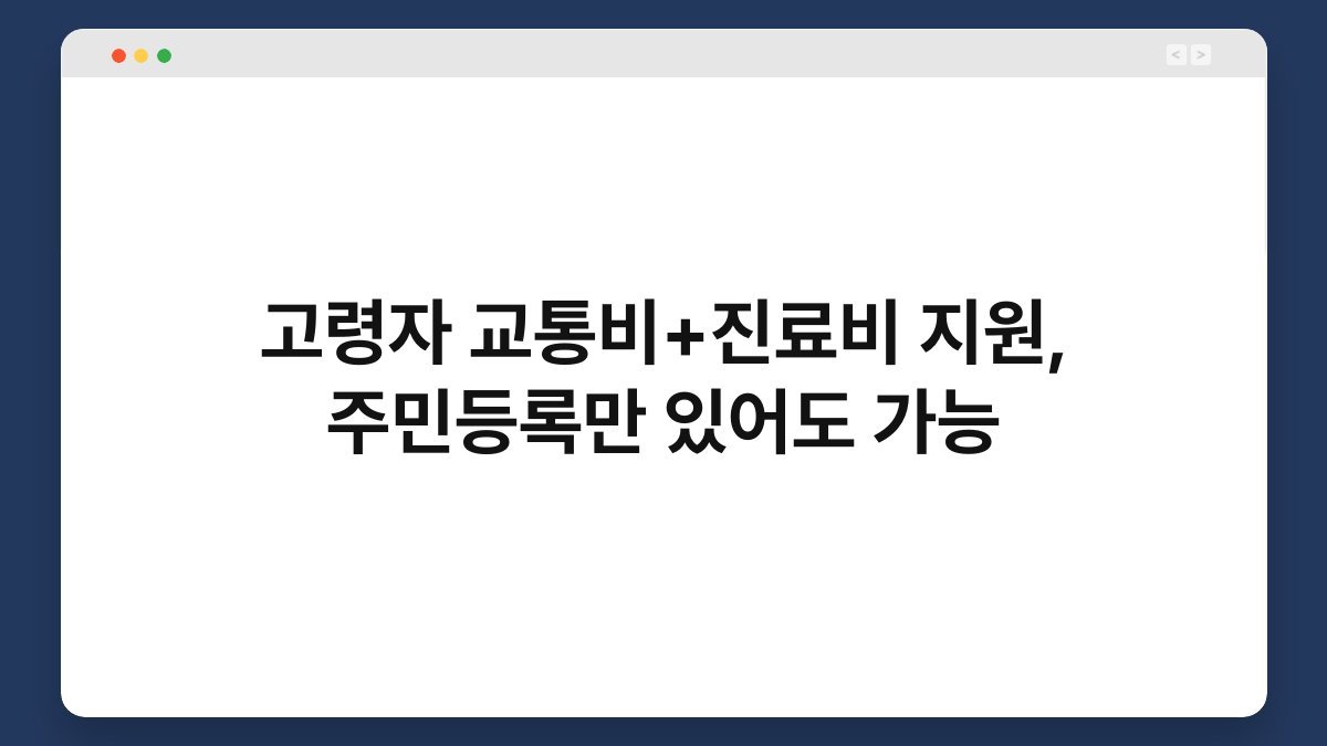 고령자 교통비와 진료비 지원은 노인 분들이 생활하는 데 큰 도움이 되는 정책입니다. 특히, 이 지원은 주민등록만 있으면 누구나 신청할 수 있어 접근성이 높습니다. 요즘은 고령화 사회로 접어들면서 많은 분들이 이러한 혜택을 필요로 하고 있습니다. 저 역시 주변의 고령자 분들이 교통비나 진료비로 어려움을 겪는 모습을 보며, 이 지원이 얼마나 중요한지 실감하게 되었습니다. 이 글을 통해 고령자 교통비와 진료비 지원의 구체적인 내용과 신청 방법을 알게 될 것입니다.