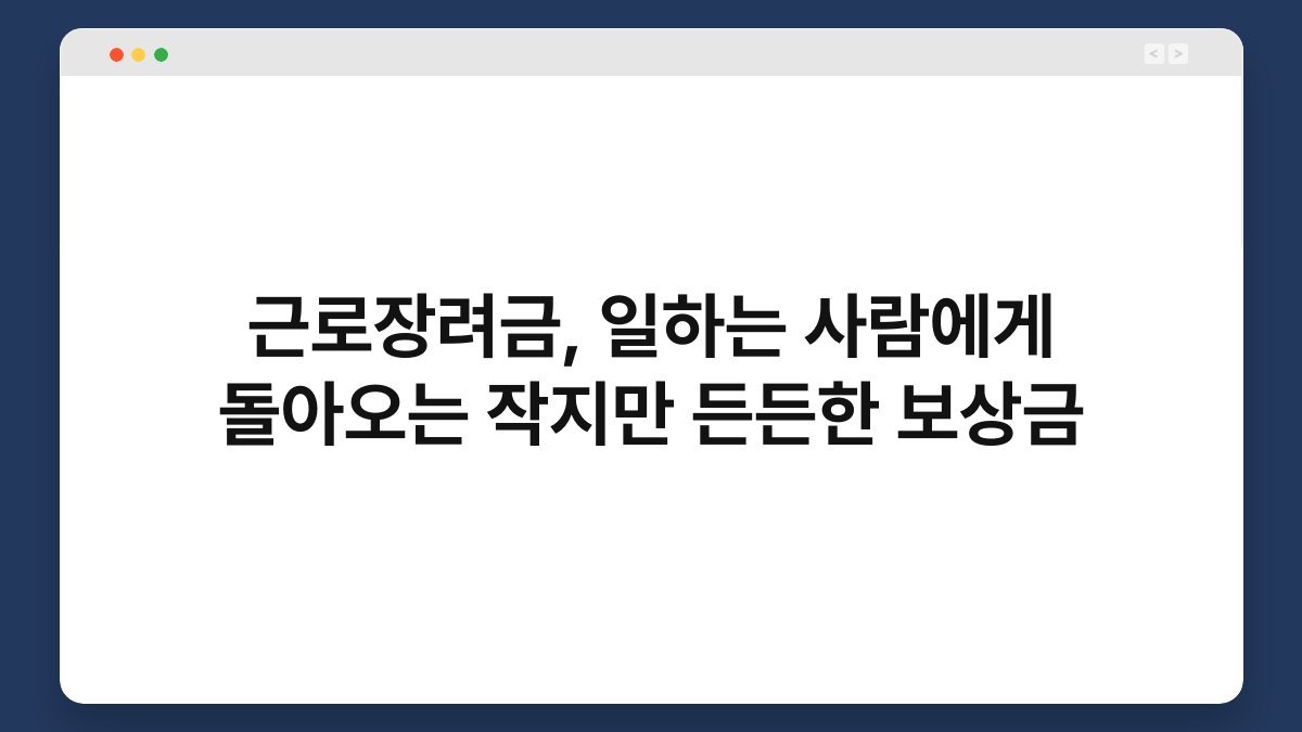 근로장려금, 일하는 사람에게 돌아오는 작지만 든든한 보상금