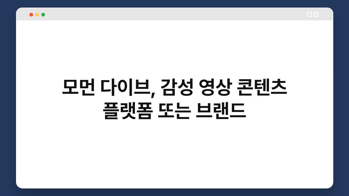 모먼 다이브는 다양한 감성 콘텐츠를 제공하는 플랫폼으로, 사용자들이 쉽게 접근할 수 있는 구조를 가지고 있습니다. 이 플랫폼은 감정에 따라 분류된 콘텐츠를 제공하여, 사용자가 원하는 감정을 쉽게 찾을 수 있도록 돕고 있습니다. 예를 들어, 슬픈 감정에 맞는 영상부터 기쁜 순간을 담은 콘텐츠까지 다양하게 구성되어 있습니다. 이러한 분류는 사용자에게 맞춤형 경험을 제공하며, 감정의 깊이를 더해줍니다.