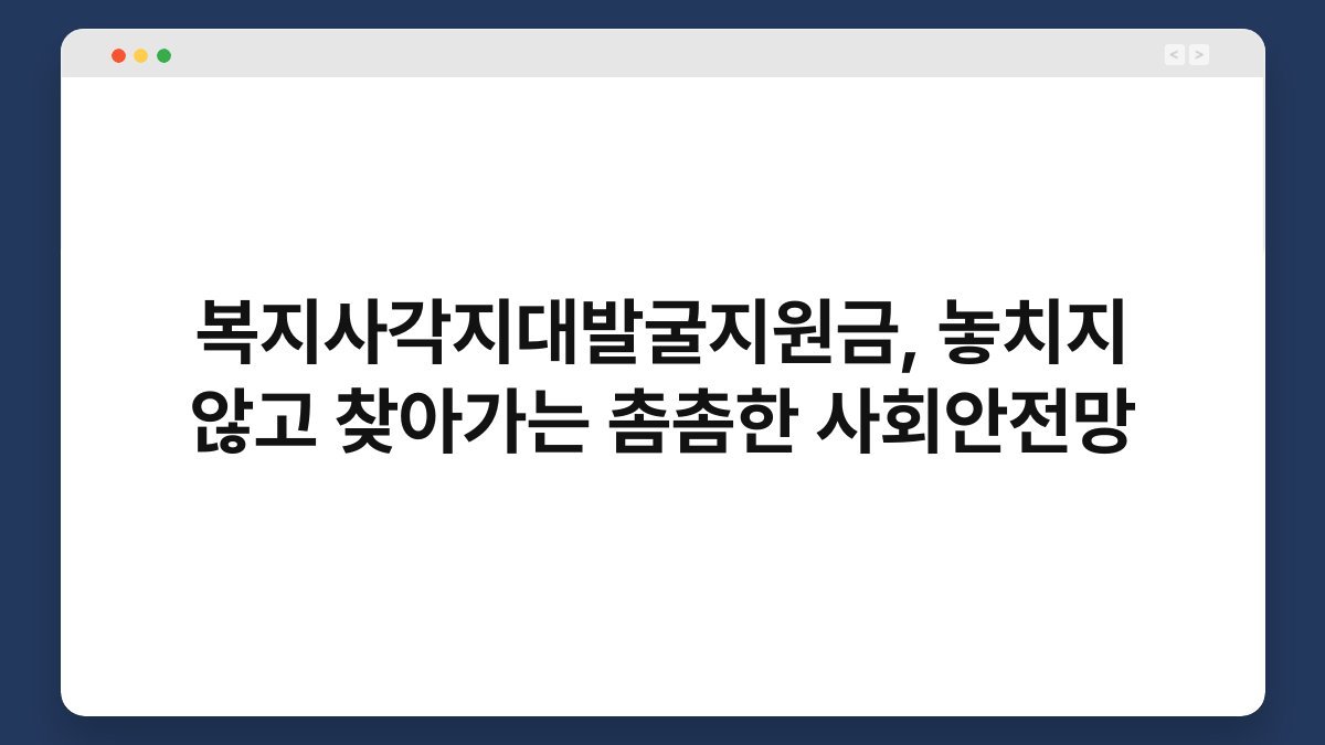 ✅ 복지사각지대발굴지원금은 취약계층을 지원하기 위해 만들어진 제도입니다.