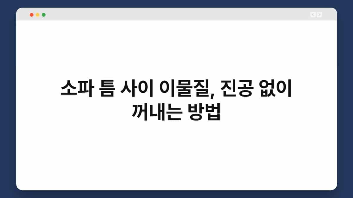 가장 간단한 방법 중 하나는 손으로 직접 이물질을 제거하는 것입니다. 소파 틈 사이에 손을 넣고 조심스럽게 이물질을 꺼내면 됩니다. 이 방법은 소파의 재질이나 구조에 따라 다를 수 있으니, 너무 세게 하지 않도록 주의해야 합니다. 손으로 제거할 때는 장갑을 착용하면 위생적입니다.