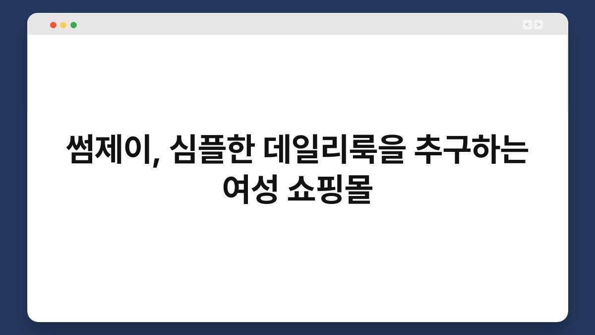 썸제이는 심플한 데일리룩을 추구하는 여성 쇼핑몰로, 일상에서 편안하면서도 세련된 스타일을 원하는 여성들을 위해 다양한 의류를 제공합니다. 많은 여성들이 바쁜 일상 속에서 간편하면서도 멋진 룩을 찾기 위해 고민하는데, 썸제이는 그러한 니즈를 충족시키기 위해 탄생했습니다. 다양한 디자인과 색상, 그리고 착용감까지 고려하여 누구나 쉽게 스타일링할 수 있는 아이템을 제공합니다. 이를 통해 여성들은 자신의 개성을 살리면서도 편안한 데일리룩을 완성할 수 있습니다. 이 글을 통해 썸제이의 제품 특징, 스타일링 팁, 쇼핑몰의 장점 등을 알아보실 수 있습니다.