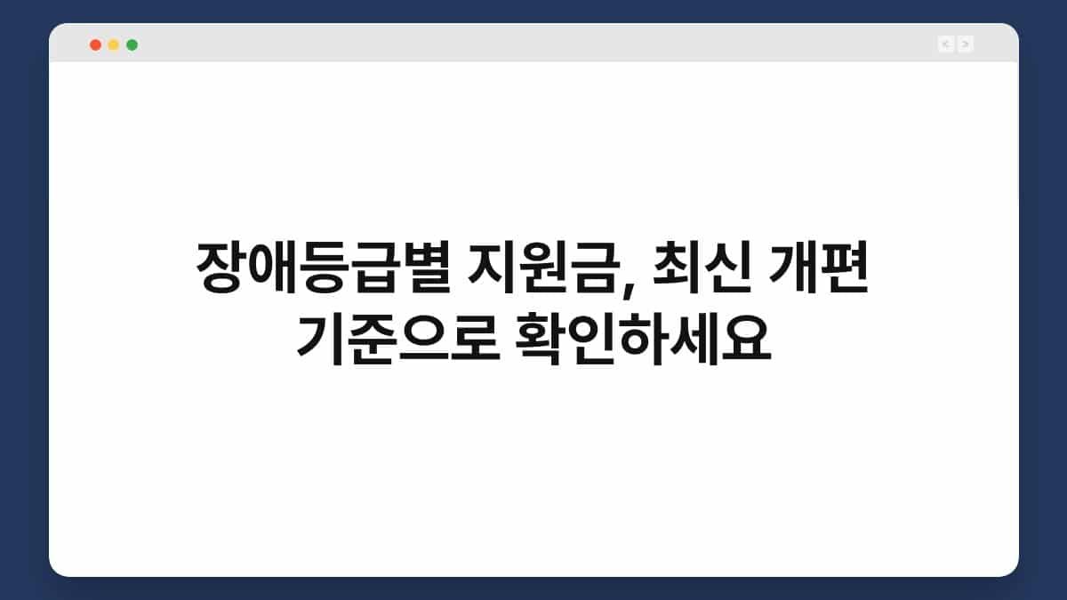 장애등급별 지원금은 장애인에게 필요한 경제적 지원을 제공하는 중요한 제도입니다. 최근에는 장애등급 기준이 개편되어 지원금의 종류와 액수가 변화하고 있습니다. 이러한 지원금은 장애인의 생활 안정과 자립을 돕기 위한 목적으로 마련되었으며, 각 장애등급에 따라 차등 지급됩니다. 따라서 장애인과 그 가족은 최신 개편 기준을 통해 자신에게 해당하는 지원금을 정확히 파악하는 것이 중요합니다. 이 글을 통해 장애등급별 지원금의 내용과 최신 개편 기준을 확인할 수 있으며, 자신에게 맞는 지원금을 효과적으로 활용할 수 있는 방법을 알게 될 것입니다.
