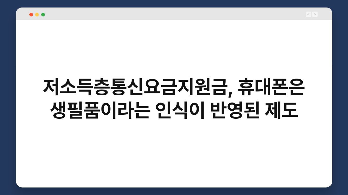 저소득층통신요금지원금은 저소득층이 통신비 부담을 덜 수 있도록 정부가 지원하는 제도입니다. 이 제도는 기본적인 통신 서비스 이용을 보장하기 위해 마련되었으며, 휴대폰이 현대 사회에서 필수품으로 자리 잡은 현실을 반영하고 있습니다. 저소득층이 통신 서비스를 이용할 수 있도록 돕는 것은 그들의 사회적 참여와 정보 접근성을 높이는 데 매우 중요합니다. 저도 한때 통신비로 고민했던 경험이 있어, 이 제도의 필요성을 깊이 공감합니다. 이 글을 읽으시면 저소득층통신요금지원금의 필요성과 효과, 그리고 제도의 구체적인 내용에 대해 잘 이해하실 수 있을 것입니다.