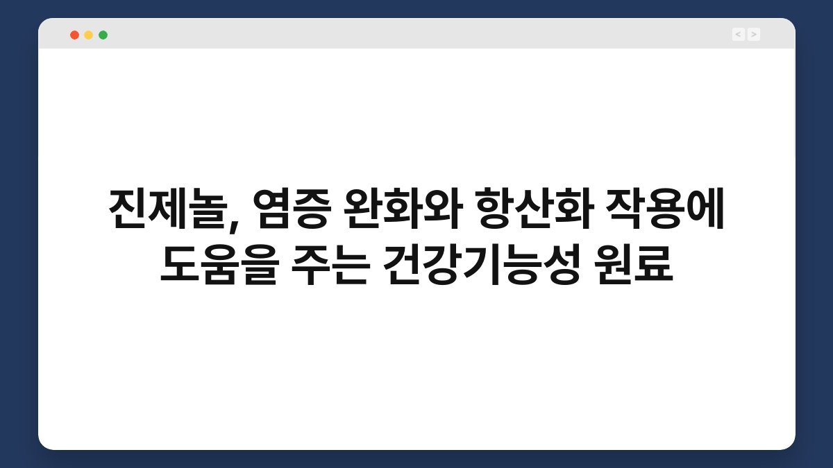 진제놀은 최근 건강기능성 원료로 주목받고 있는 물질입니다. 염증 완화와 항산화 작용에 도움을 주는 성분으로, 많은 사람들이 건강을 지키기 위해 관심을 갖고 있습니다. 특히 현대인의 생활에서 스트레스와 불규칙한 식습관으로 인해 염증이 발생하기 쉬운 환경이 조성되고 있습니다. 저도 예전에는 잦은 피로와 염증으로 고생한 경험이 있어, 진제놀의 효능에 대해 깊이 알아보고 싶었습니다. 이 글을 통해 진제놀의 특성과 효과, 활용 방법에 대해 자세히 알아보도록 하겠습니다.
