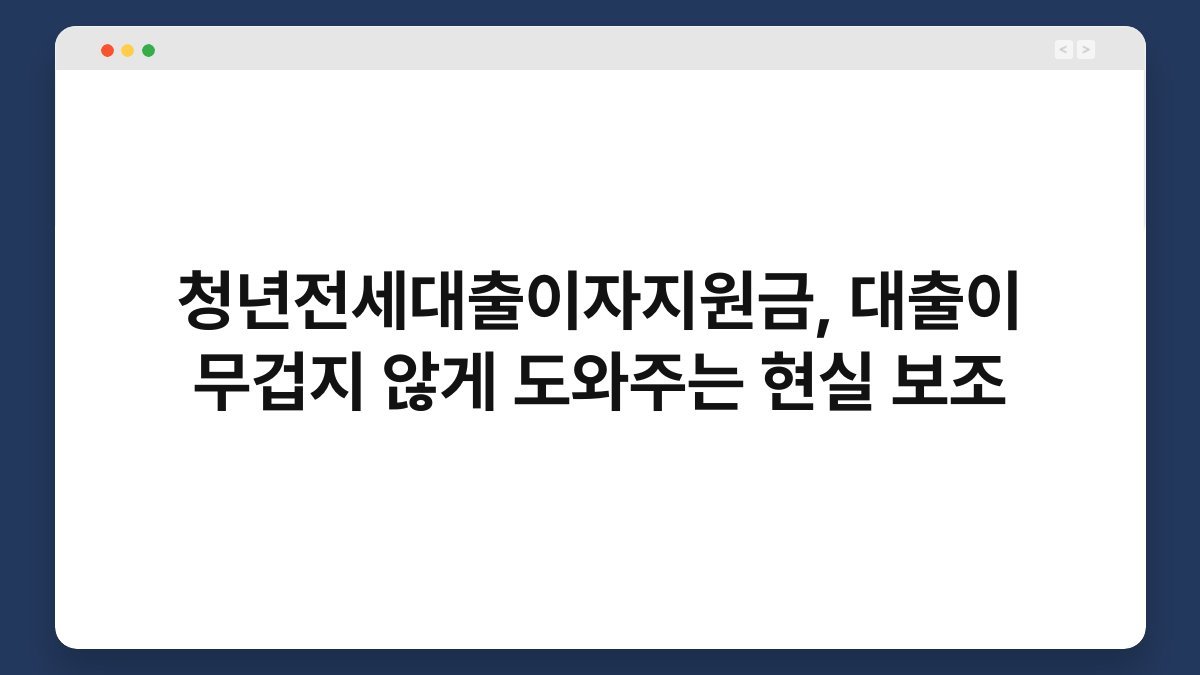 청년전세대출이자지원금은 청년들이 전세를 구할 때 대출 이자를 지원해주는 제도입니다. 이 지원금은 높은 전세 비용으로 어려움을 겪는 청년들에게 실질적인 도움이 됩니다. 많은 청년들이 집을 구하는 과정에서 경제적인 부담을 느끼곤 하죠. 저 또한 전세를 구할 때 이자 부담 때문에 고민했던 기억이 있습니다. 이 글을 통해 청년전세대출이자지원금의 구체적인 내용, 신청 방법, 그리고 이 제도가 어떻게 청년들에게 현실적인 보조 역할을 하는지 알아보겠습니다.