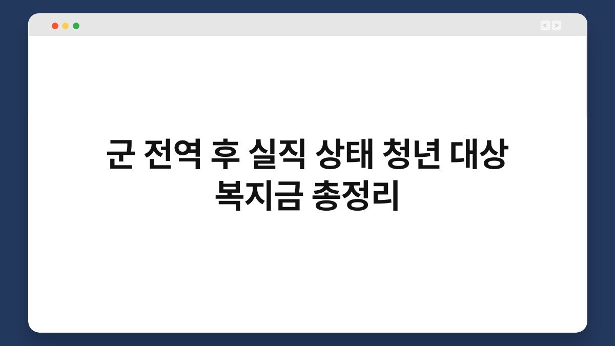 ✅ 군 전역 후 실직 상태 청년들을 위한 다양한 복지금이 존재합니다.
