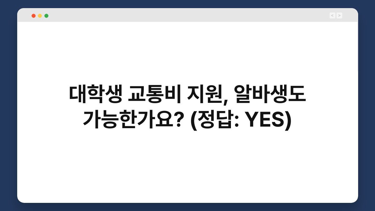 대학생 교통비 지원은 알바생에게도 해당됩니다. 많은 학생들이 아르바이트를 하며 학비와 생활비를 충당하고 있습니다. 이때 교통비 지원이 이루어진다면 학생들은 경제적 부담을 덜 수 있습니다. 특히, 아르바이트를 위해 먼 거리를 이동해야 하는 경우, 교통비 지원은 더 큰 도움이 됩니다.