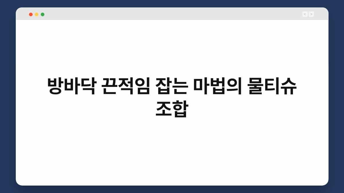 마법의 물티슈 조합은 방바닥의 끈적임을 효과적으로 제거할 수 있는 간단한 해결책입니다. 물티슈는 언제 어디서든 쉽게 사용할 수 있어 편리합니다. 특히, 아이들이 있는 가정에서는 빠르게 청소할 수 있는 방법이 필요합니다. 이럴 때 물티슈 조합이 큰 도움이 됩니다.