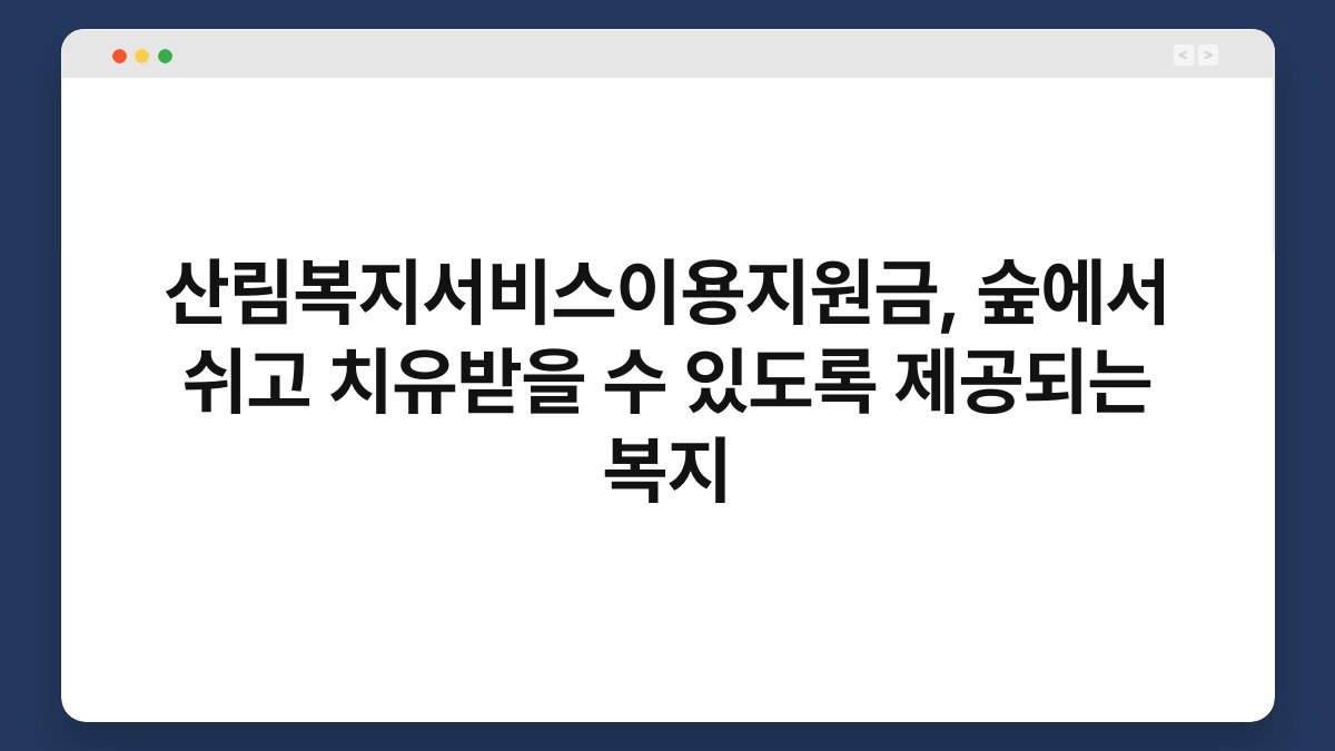 | 개념 | 산림복지서비스이용지원금은 숲에서의 복지 서비스를 지원하는 제도입니다. |