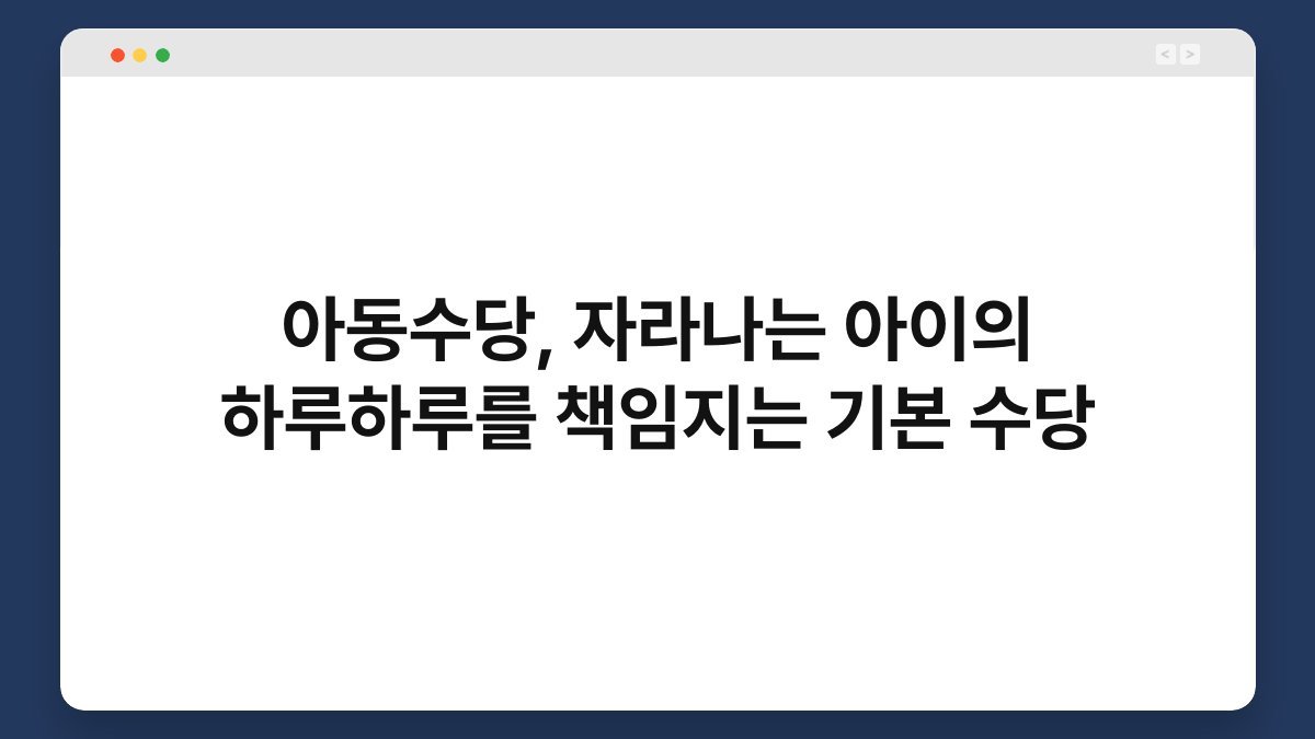 아동수당은 자라나는 아이의 하루하루를 책임지는 기본 수당으로, 부모가 자녀 양육에 필요한 경제적 지원을 제공하는 제도입니다. 이 수당은 아동의 성장과 발달을 돕기 위해 정부에서 지급하며, 아이가 태어난 순간부터 청소년기까지 지속적으로 지원됩니다. 많은 부모님들이 느끼는 부담을 덜어주고, 아이들이 건강하게 성장할 수 있는 환경을 조성하는 데 큰 역할을 합니다. 제 경험으로도, 아동수당 덕분에 아이의 교육과 생활비를 조금이나마 덜 걱정할 수 있었습니다. 이 글을 통해 아동수당의 필요성과 혜택, 신청 방법 및 활용 방안에 대해 자세히 알아보겠습니다.