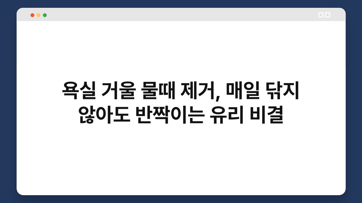 욕실 거울에 물때가 생기는 것은 많은 사람들이 겪는 공통적인 문제입니다. 매일 아침 거울을 보며 준비할 때, 물때가 끼어 있는 모습을 보면 기분이 좋지 않죠. 하지만 매일 거울을 닦는 것은 현실적으로 쉽지 않은 일입니다. 저도 한때는 물때 때문에 스트레스를 받았던 경험이 있습니다. 그러나 몇 가지 간단한 팁을 통해 욕실 거울을 항상 반짝이게 유지할 수 있는 방법을 발견했습니다. 이 글을 통해 욕실 거울의 물때 제거 방법과 매일 닦지 않아도 반짝이는 유리 비결을 알아보겠습니다.