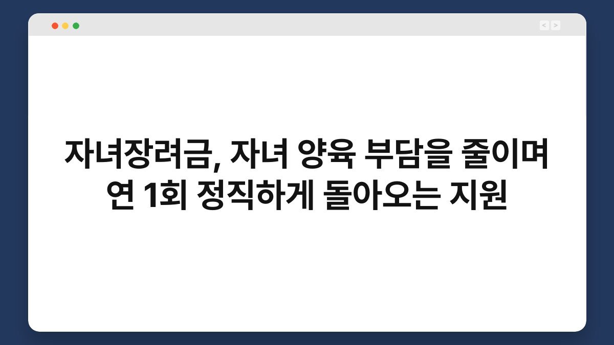 | 자녀장려금은 자녀 양육 부담을 줄이는 재정 지원입니다. |