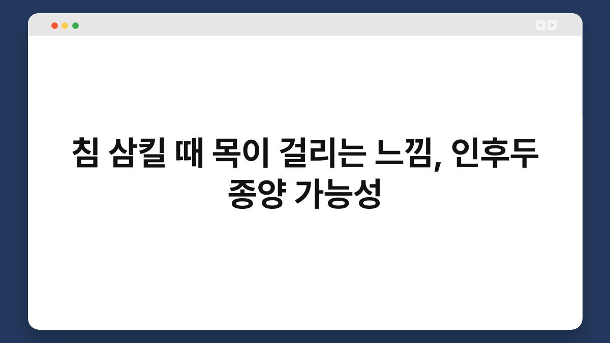 침 삼킬 때 목이 걸리는 느낌은 많은 사람들이 경험하는 불편한 증상입니다. 이 느낌은 종종 목구멍에 무엇이 걸린 듯한 불안감을 주며, 일상생활에 지장을 줄 수 있습니다. 특히 이러한 증상이 지속되거나 심해지면 인후두 종양과 같은 심각한 문제를 의심하게 됩니다. 저 또한 한동안 이 증상으로 고생했던 경험이 있어, 그 불편함을 잘 알고 있습니다. 이 글에서는 침 삼킬 때 목이 걸리는 느낌의 원인과 이를 통해 인후두 종양의 가능성을 알아보는 방법에 대해 설명드리겠습니다.