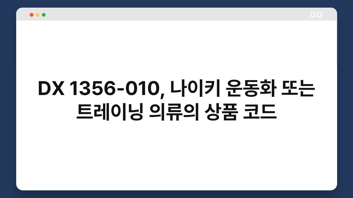 운동화와 트레이닝 의류는 현대인의 생활에서 필수적인 아이템이 되었습니다. 특히, 나이키의 제품들은 그 품질과 디자인으로 많은 사랑을 받고 있습니다. 그중에서도 DX 1356-010이라는 상품 코드는 나이키의 운동화나 트레이닝 의류에서 자주 언급되는 중요한 요소입니다. 운동을 시작하려는 분들이나 스타일을 중시하는 분들에게 이 제품은 큰 매력을 지니고 있습니다. 저도 처음 운동을 시작할 때, 적절한 운동화를 찾는 데 어려움을 겪었던 기억이 납니다. 이 글을 통해 DX 1356-010의 특징과 나이키 제품의 장점을 깊이 있게 알아보겠습니다.