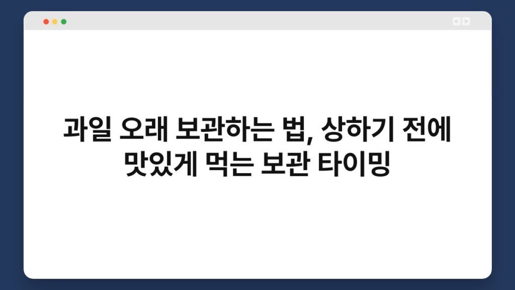 과일은 신선하고 맛있는 맛으로 많은 사람들에게 사랑받는 식품입니다. 그러나 과일은 쉽게 상하기 때문에 보관 방법이 매우 중요합니다. 상하기 전에 맛있게 ...