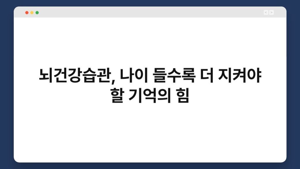뇌건강습관, 나이 들수록 더 지켜야 할 기억의 힘