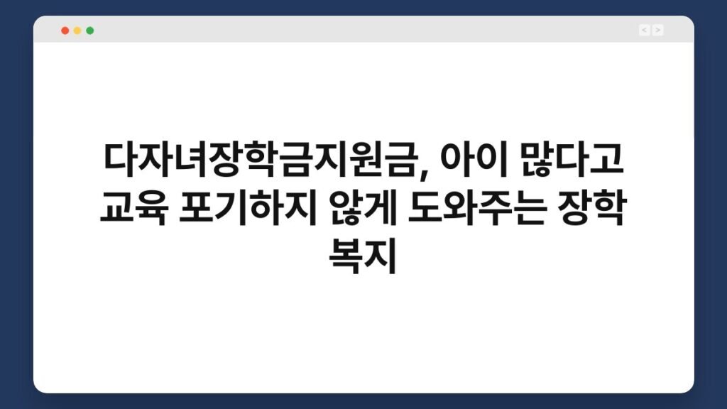 다자녀장학금지원금은 자녀가 여러 명인 가정을 위한 교육 지원 제도입니다. 이 제도는 아이가 많아 경제적 부담이 큰 부모님들이 교육을 포기하지 않도록 ...