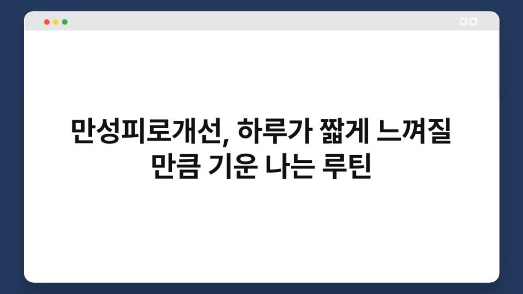 만성피로는 현대인들이 자주 겪는 문제 중 하나입니다. 하루 종일 피곤함을 느끼고, 에너지가 부족한 상태로 하루를 보내는 것이죠. 저 역시 이런 ...