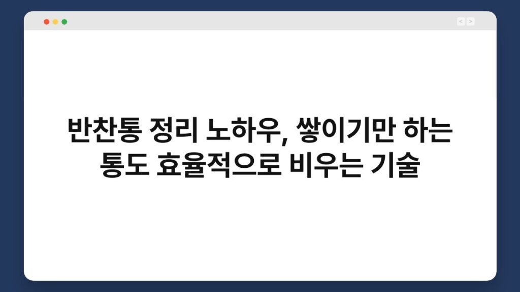 반찬통 정리 노하우와 쌓이기만 하는 통도 효율적으로 비우는 기술은 주부들에게 매우 중요한 주제입니다. 많은 가정에서 반찬통이 쌓여만 가는 현실, 저도 ...