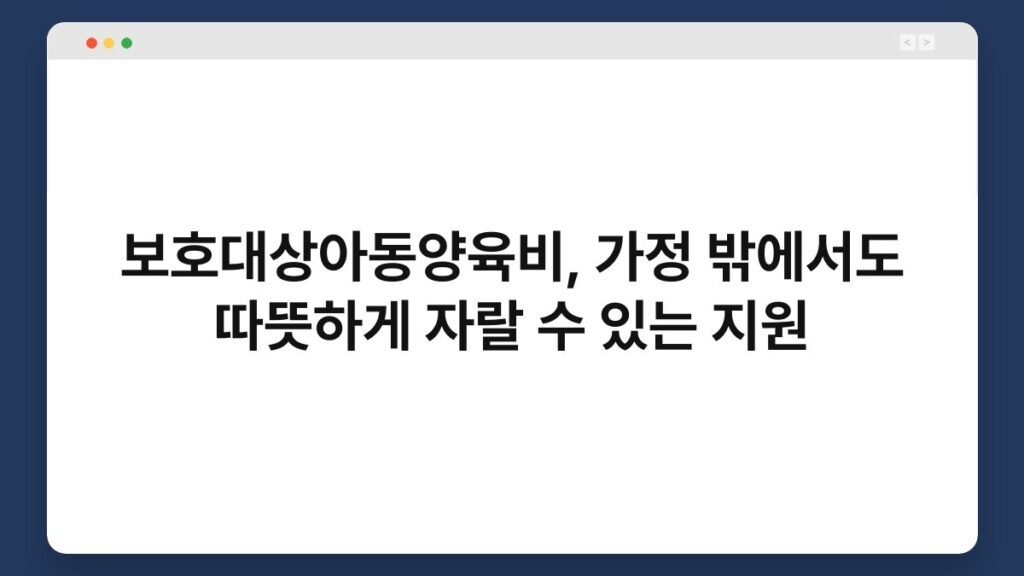 보호대상아동양육비는 가정 밖에서 자라는 아동들이 안정적인 환경에서 성장할 수 있도록 지원하는 중요한 제도입니다. 이러한 지원은 아동의 기본적인 생활비와 교육비를 포함하여, ...