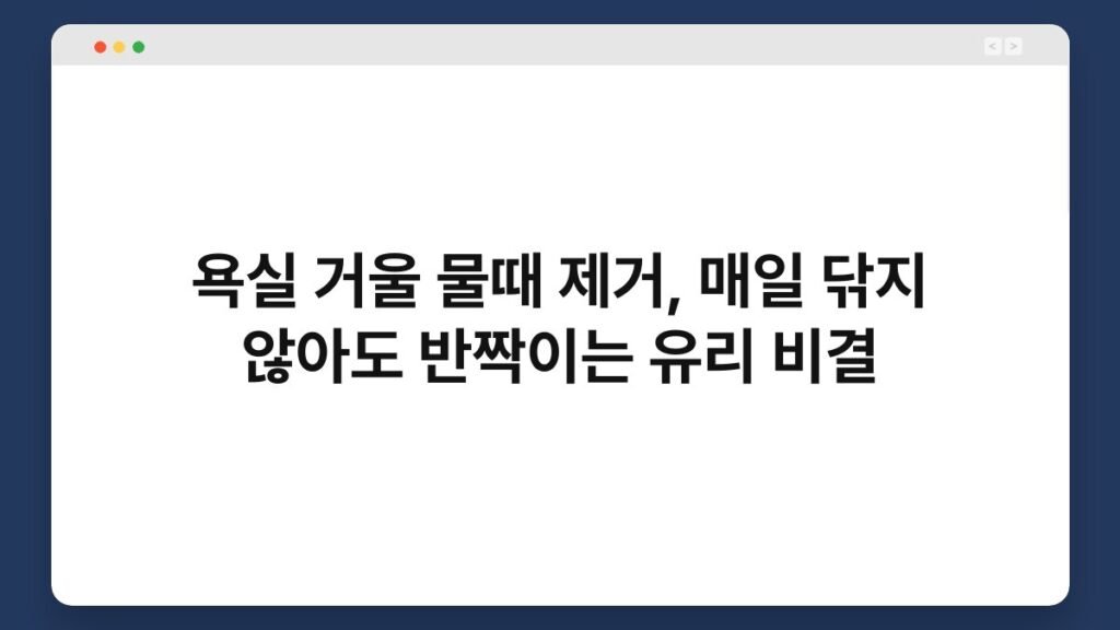 욕실 거울에 물때가 생기는 것은 많은 사람들이 겪는 공통적인 문제입니다. 매일 아침 거울을 보며 준비할 때, 물때가 끼어 있는 모습을 ...