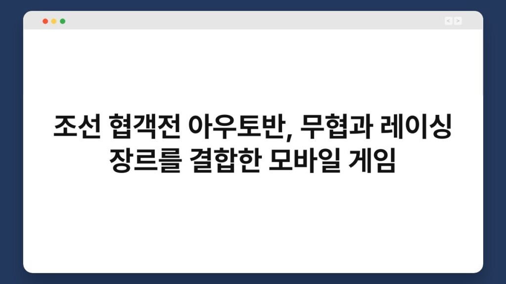 조선 협객전 아우토반은 무협과 레이싱 장르를 결합한 모바일 게임으로, 독특한 매력을 지니고 있습니다. 이 게임은 전통적인 무협의 멋과 스피드를 자랑하는 ...
