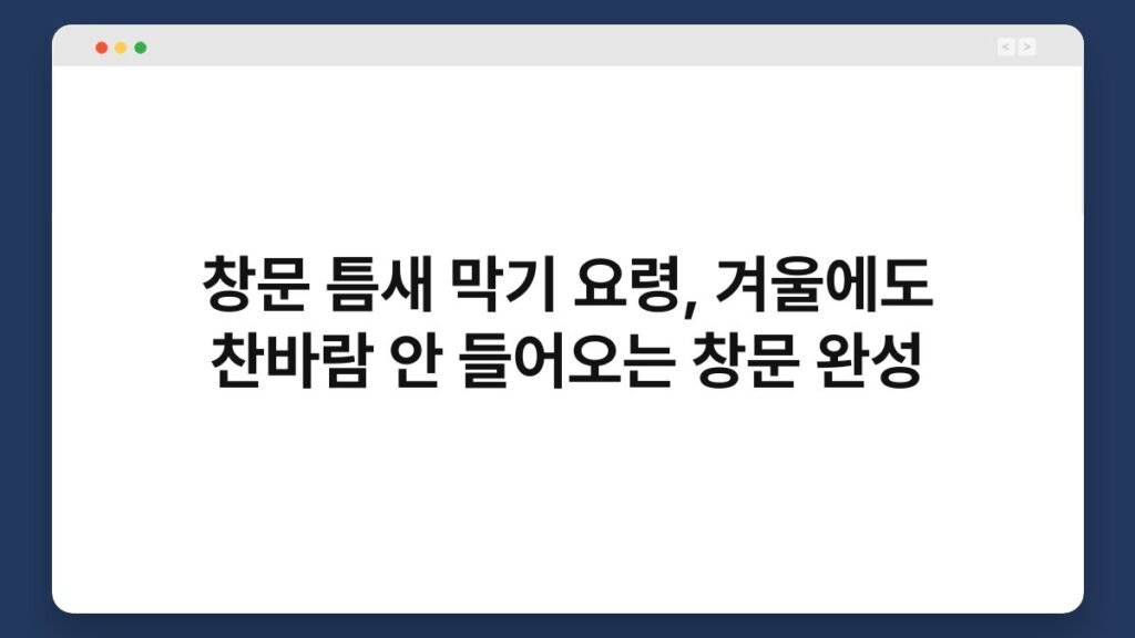 겨울철이 다가오면 창문 틈새로 들어오는 찬바람 때문에 많은 사람들이 불편함을 겪습니다. 특히, 외부 온도가 급격히 떨어지는 날에는 집안의 따뜻한 공기가 ...