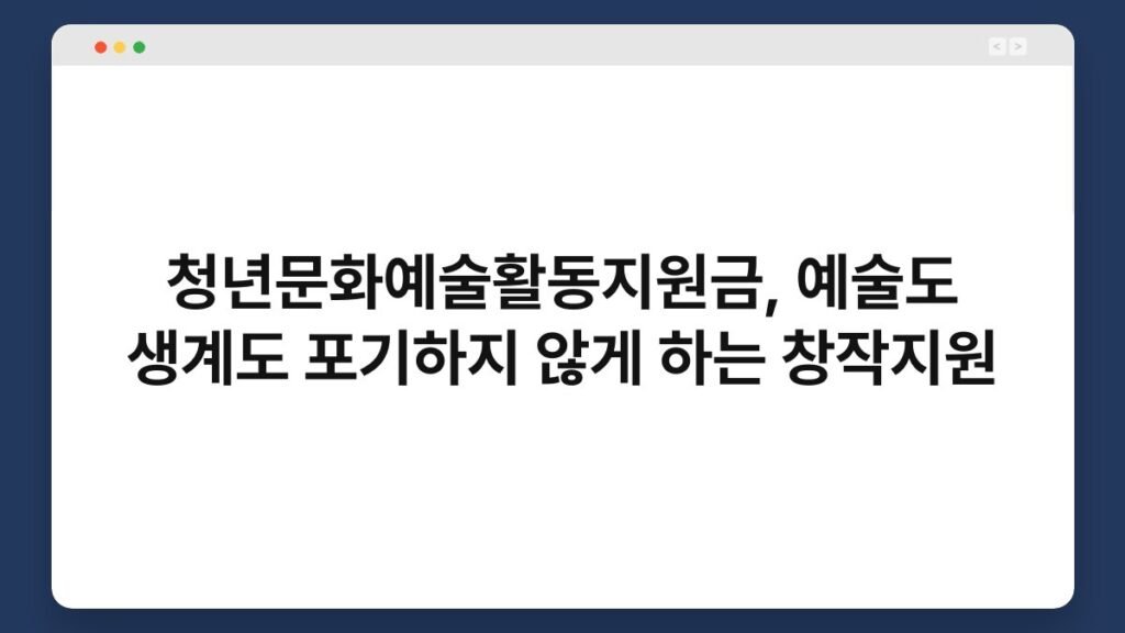 청년문화예술활동지원금은 청년들이 예술 분야에서 활동할 수 있도록 돕는 재정 지원 프로그램입니다. 이 지원금은 창작에 필요한 자원을 제공함으로써, 청년들이 생계를 걱정하지 ...