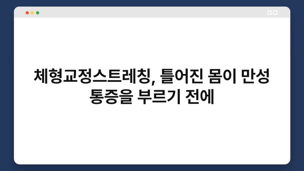 운동과 스트레칭은 건강한 삶을 위한 필수 요소입니다. 하지만 많은 사람들이 체형 교정 스트레칭의 중요성을 간과하고 있습니다. 틀어진 몸은 만성 통증을 ...