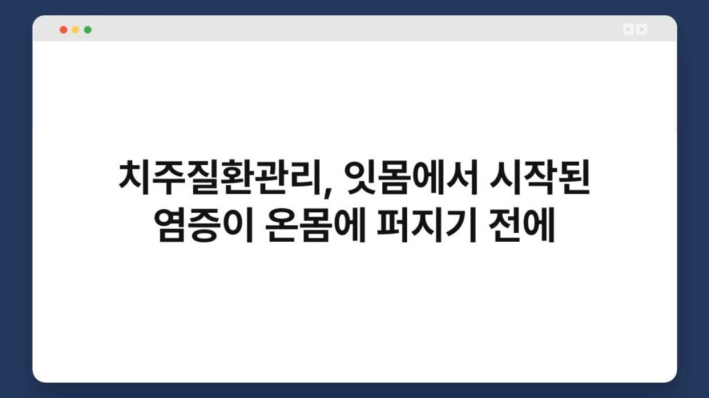 치주질환관리는 잇몸에서 시작된 염증이 전신으로 퍼지기 전에 이를 예방하고 관리하는 과정입니다. 많은 사람들이 잇몸 건강을 소홀히 여기지만, 잇몸의 염증은 단순한 ...