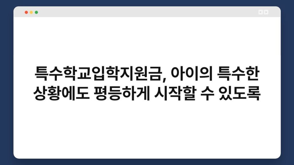 특수학교입학지원금은 장애가 있는 자녀를 둔 가정에서 중요한 재정적 지원을 제공합니다. 이 지원금은 아이들이 특수학교에 입학할 때 필요한 비용을 보조하여, 모든 ...