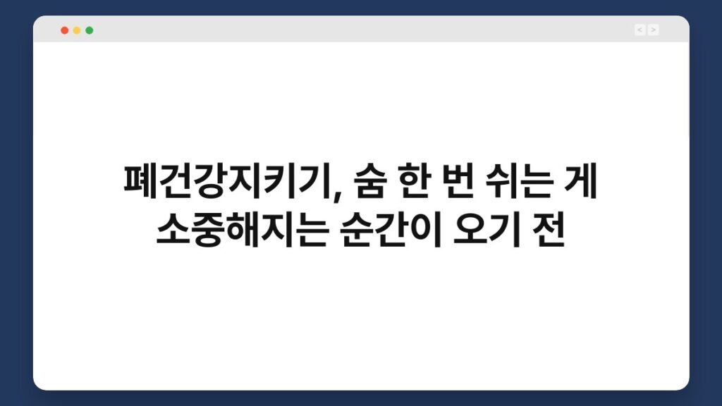 폐건강지키기는 우리가 일상에서 간과하기 쉬운 중요한 주제입니다. 현대 사회에서 흡연, 공기 오염, 스트레스 등 다양한 요인이 폐 건강에 악영향을 미치고 ...