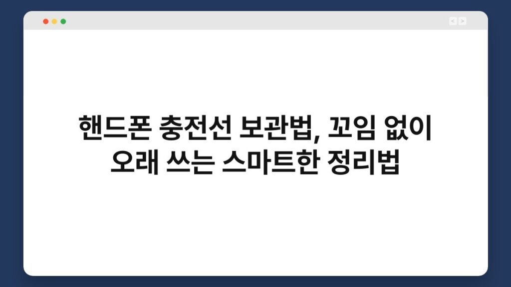 핸드폰 충전선 보관법은 많은 사람들이 고민하는 문제입니다. 스마트폰 사용이 보편화되면서 충전선이 필수품이 되었지만, 자주 엉키거나 손상되는 경우가 많습니다. 저도 처음에는 ...