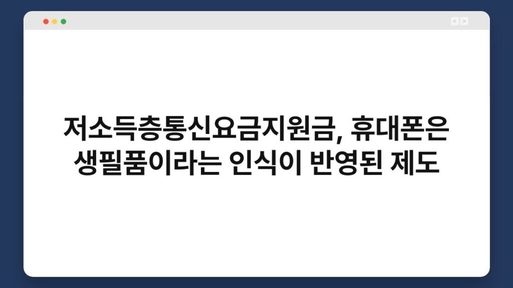 저소득층통신요금지원금은 저소득층이 통신비 부담을 덜 수 있도록 정부가 지원하는 제도입니다. 이 제도는 기본적인 통신 서비스 이용을 보장하기 위해 마련되었으며, 휴대폰이 ...