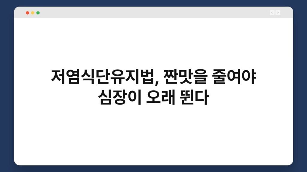 저염식단유지법은 건강을 위한 필수적인 선택입니다. 현대인들은 짠 음식을 즐기는 경향이 강해, 나트륨 섭취가 과도해지는 경우가 많습니다. 하지만 짠맛을 줄여야 심장이 ...
