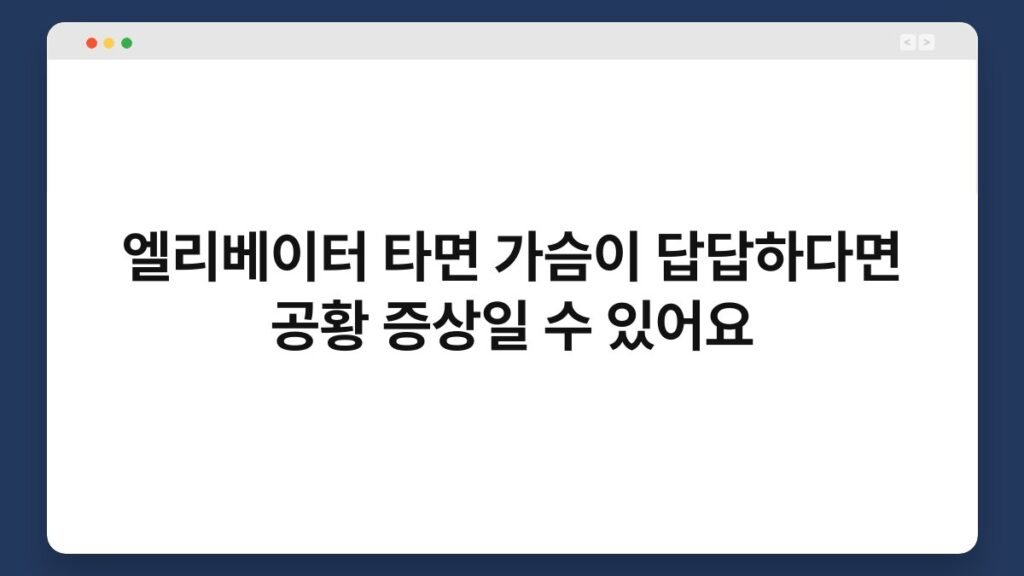 엘리베이터를 타면 가슴이 답답한 경험, 혹시 있으신가요? 이런 증상은 단순한 불편함이 아니라 공황 증상의 일환일 수 있습니다. 많은 사람들이 엘리베이터와 ...