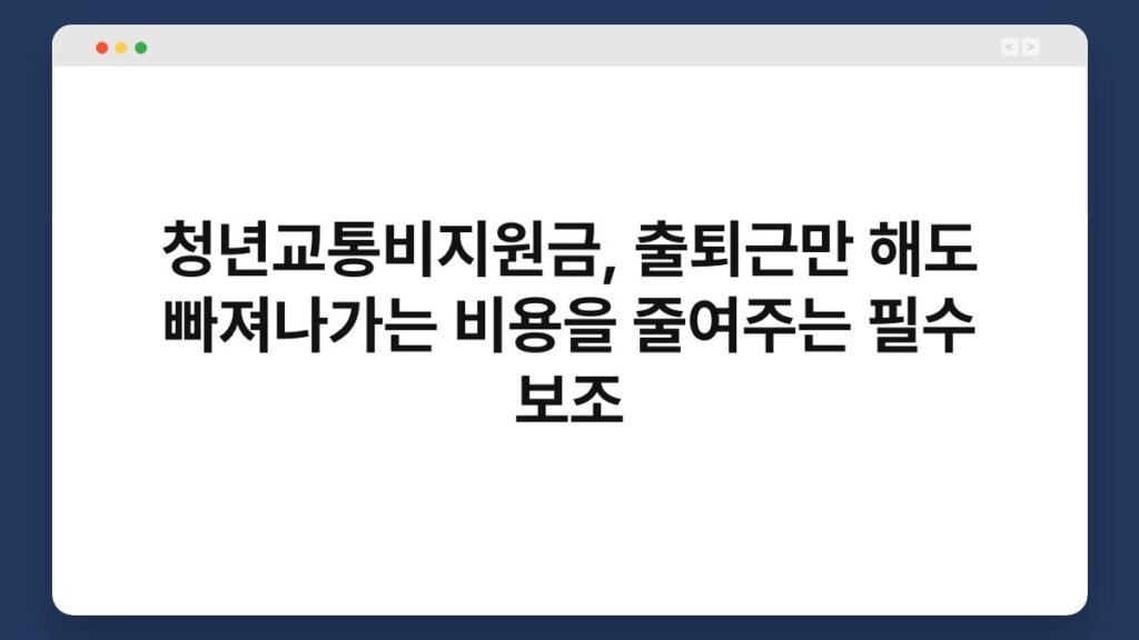 청년교통비지원금은 청년들의 출퇴근 비용을 지원하기 위한 정부의 정책입니다. 최근 물가 상승과 교통비 인상으로 인해 많은 청년들이 경제적 부담을 느끼고 있습니다. ...
