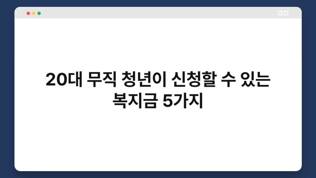 20대 무직 청년이 신청할 수 있는 복지금은 다양한 형태로 제공됩니다. 많은 청년들이 취업의 어려움과 경제적 부담으로 힘든 시기를 겪고 있습니다. ...